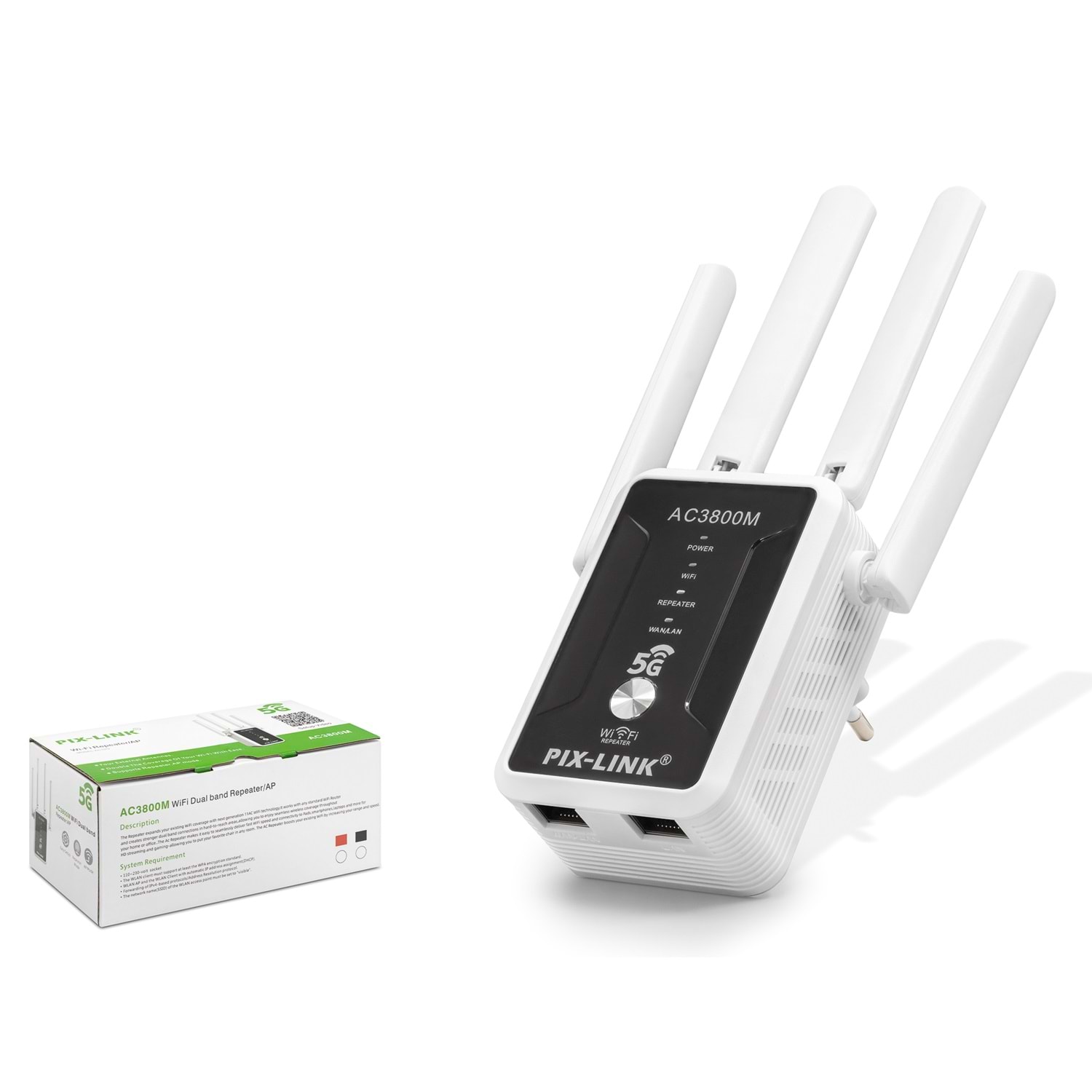 PIX-LINK LV-AC32Q, ev ve ofislerdeki internet erişim sorunlarını kökten çözmek için geliştirilmiş ultra performanslı bir ağ genişleticidir. AC3800 hız kapasitesi sayesinde, 5 GHz bandında gecikmesiz oyun ve 4K yayın deneyimi sunarken, 2.4 GHz bandıyla geniş kapsama alanı sağlayarak ölü noktaları tamamen ortadan kaldırır.