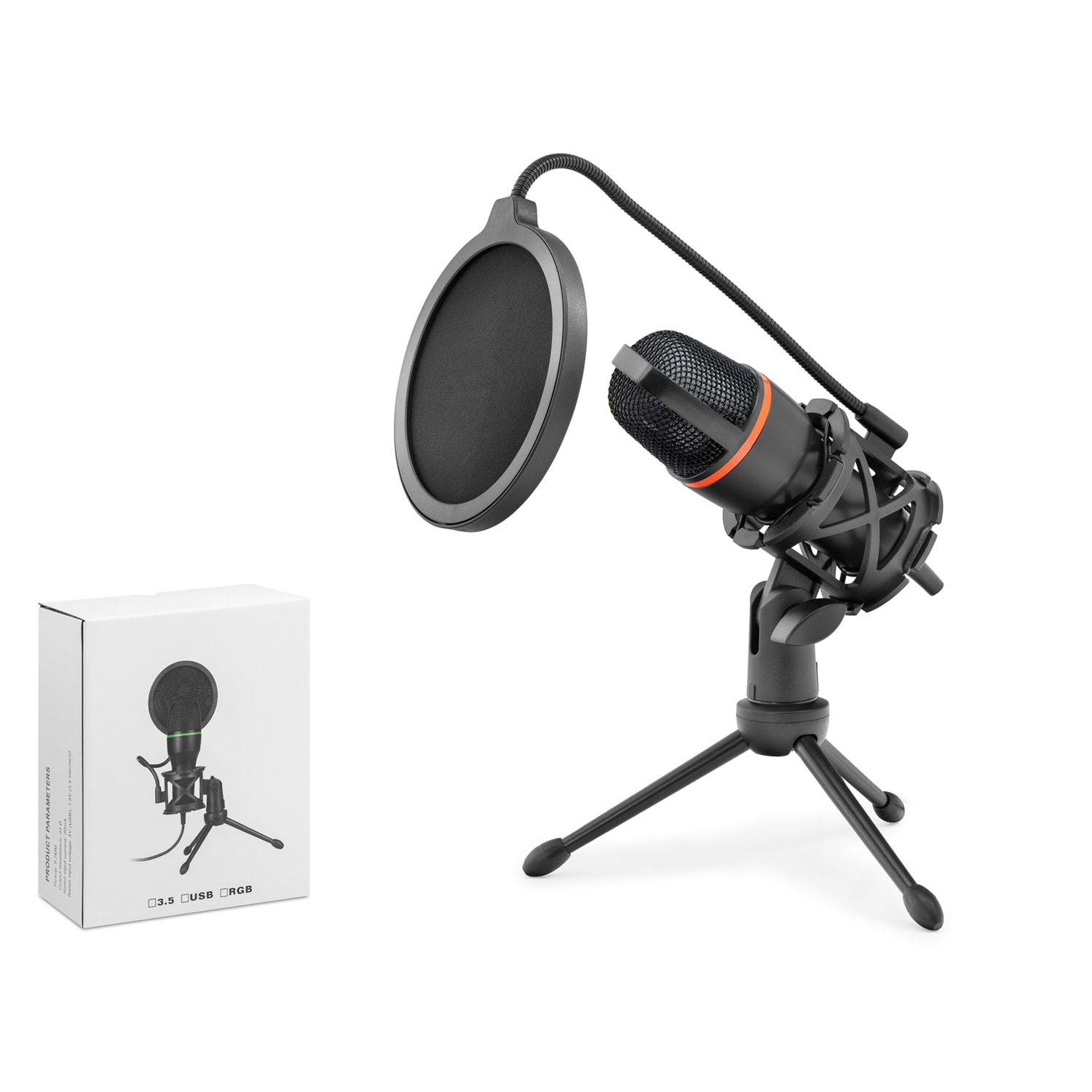 Pop filtre yapısı ses kayıt sırasında oluşabilecek hava ve patlama seslerini azaltmaya yardımcı olur. Tripod ayak yapısı masa üzerinde sabit kullanım sağlar. RGB aydınlatma masaüstü ekipmanları ile görsel uyum sağlar.