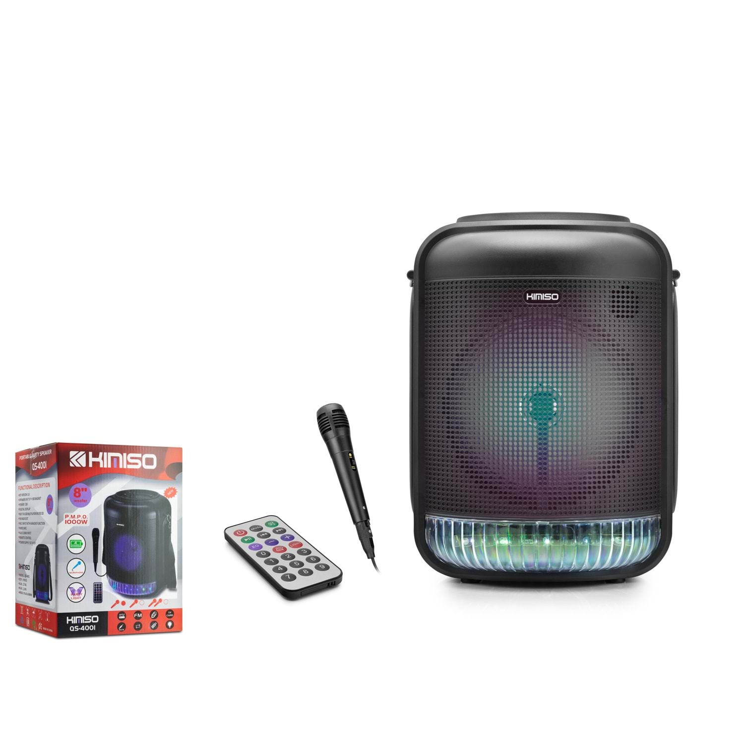 Kimiso QS-4001, yüksek ses hacmi ve etkileyici görsel efektleri kompakt bir gövdede buluşturuyor. 8 inçlik güçlü sürücüsü sayesinde derin baslar ve berrak vokal çıkışları sunan bu model, ön panelindeki dinamik RGB LED aydınlatma paneli ile müziğin ritmine göre renk değiştirerek ortamın enerjisini anında yükseltir.
