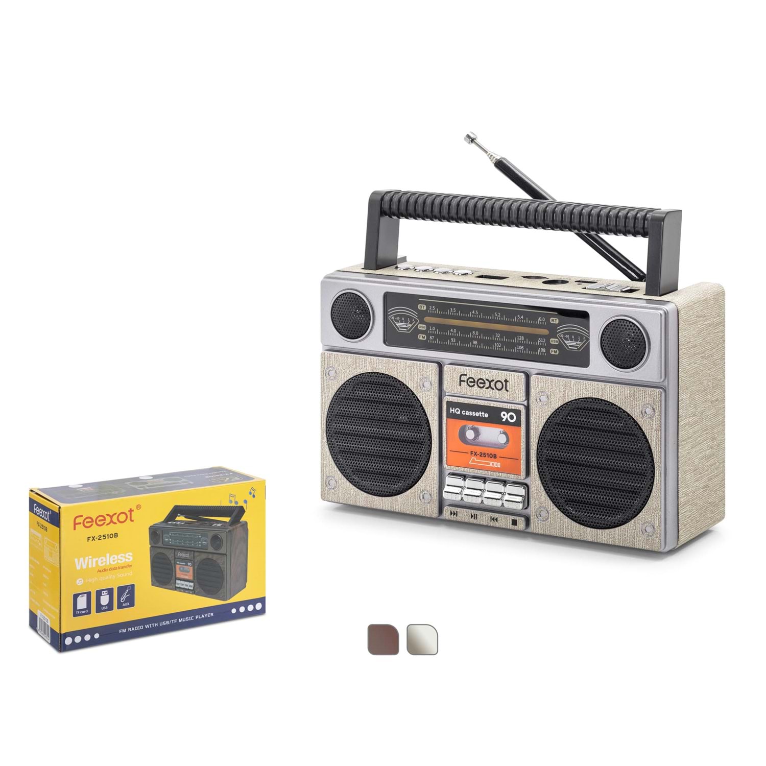 FEEXOT FX2510B BLUETOOTH NOSTALJİK FM RADYO USB TF AUX TAŞINABİLİR HOPARLÖR - BEJ