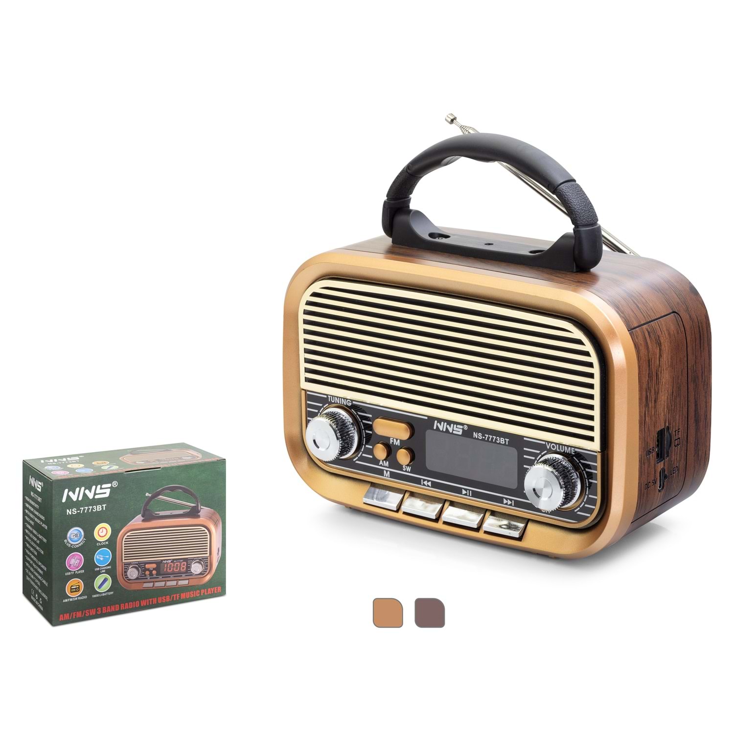 NNS NS-7773BT BLUETOOTH NOSTALJİK FM RADYO TWS USB TF TAŞINABİLİR HOPARLÖR - KAHVERENGİ