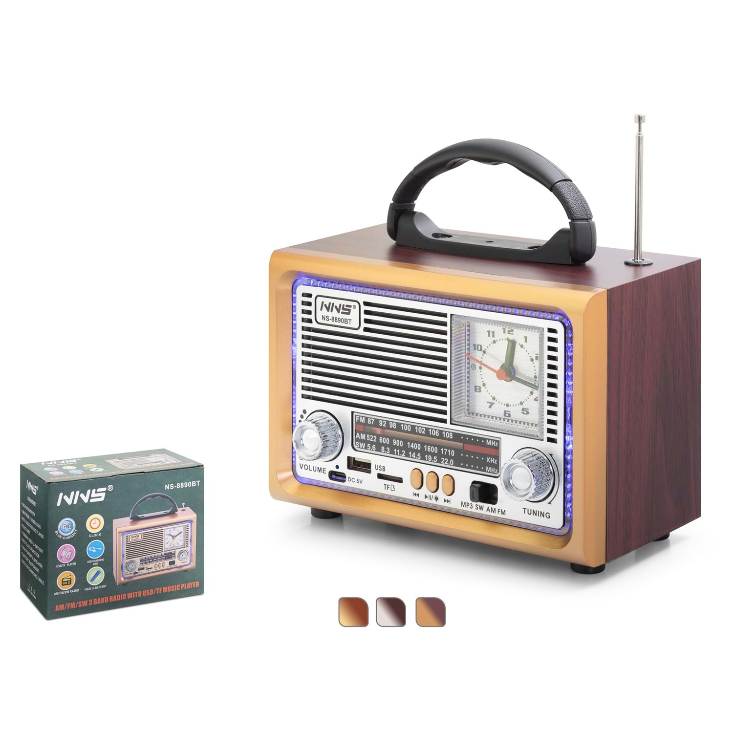 NNS NS-8890BT BLUETOOTH NOSTALJİK FM RADYO ANALOG SAATLİ TAŞINABİLİR HOPARLÖR - MAUN