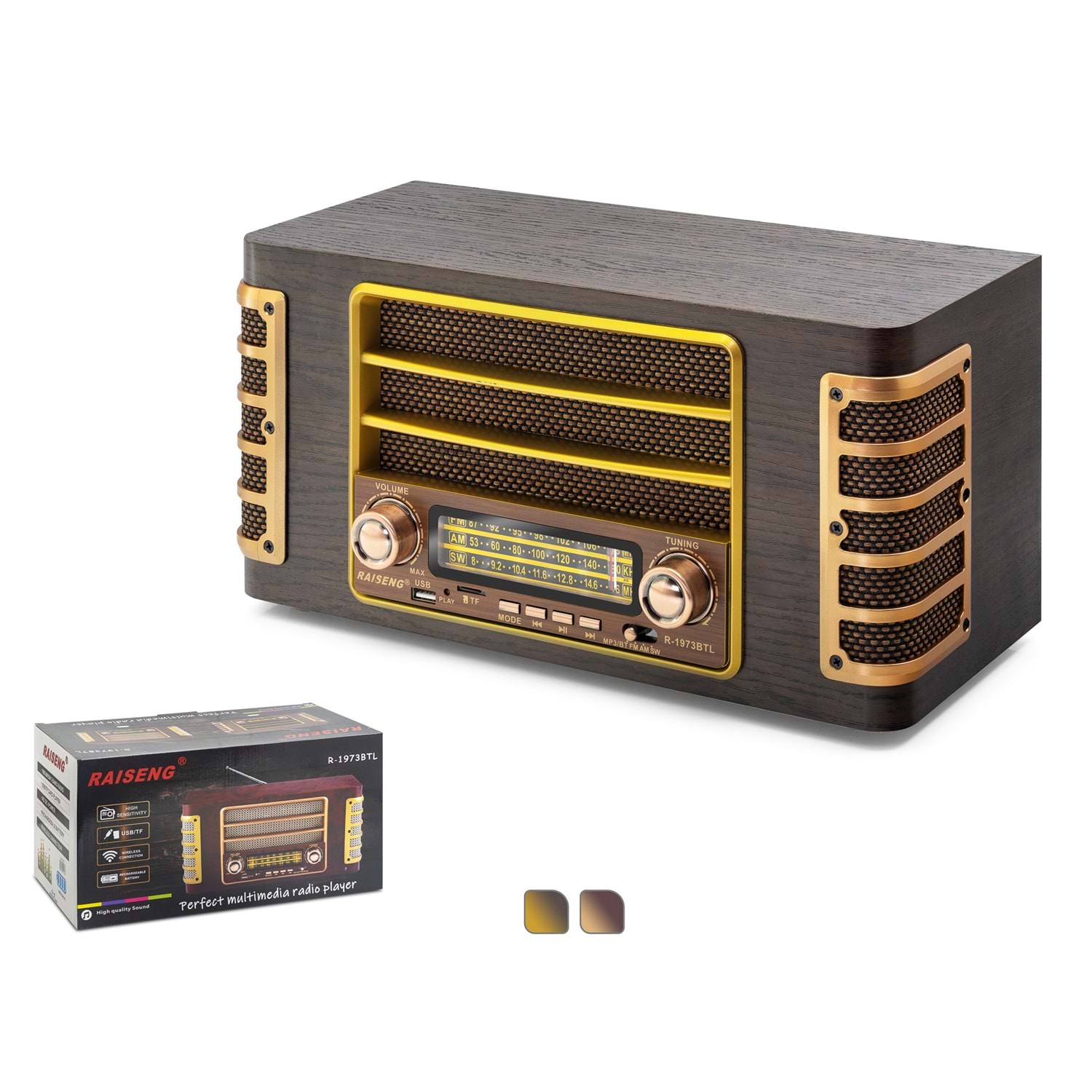 RAISENG R1973BTL Bluetooth Nostaljik FM Radyo USB TF Hoparlör