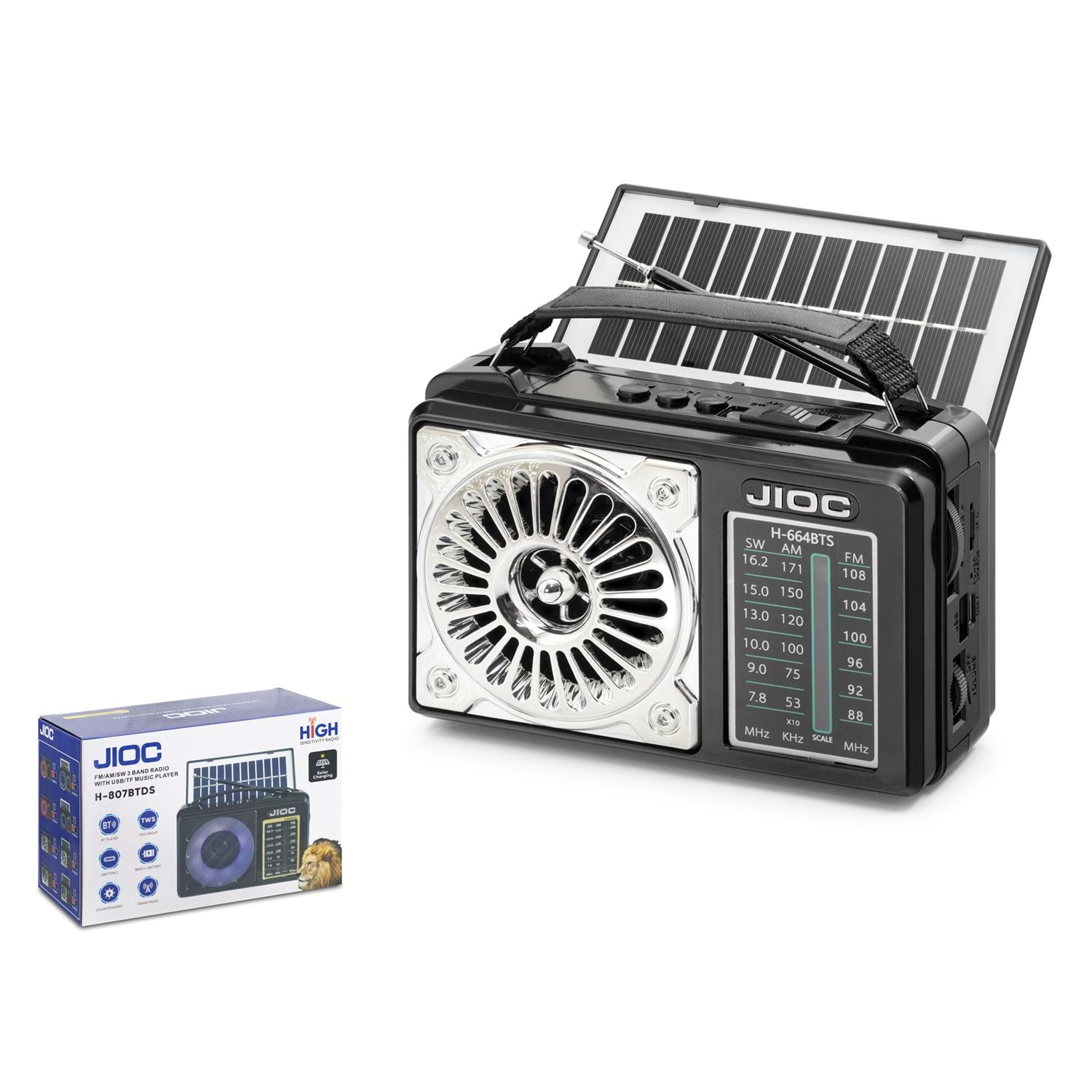 JIOC H-664BTS BLUETOOTH NOSTALJİK FM RADYO SOLAR ŞARJLI TWS TAŞINABİLİR KAMP HOPARLÖR