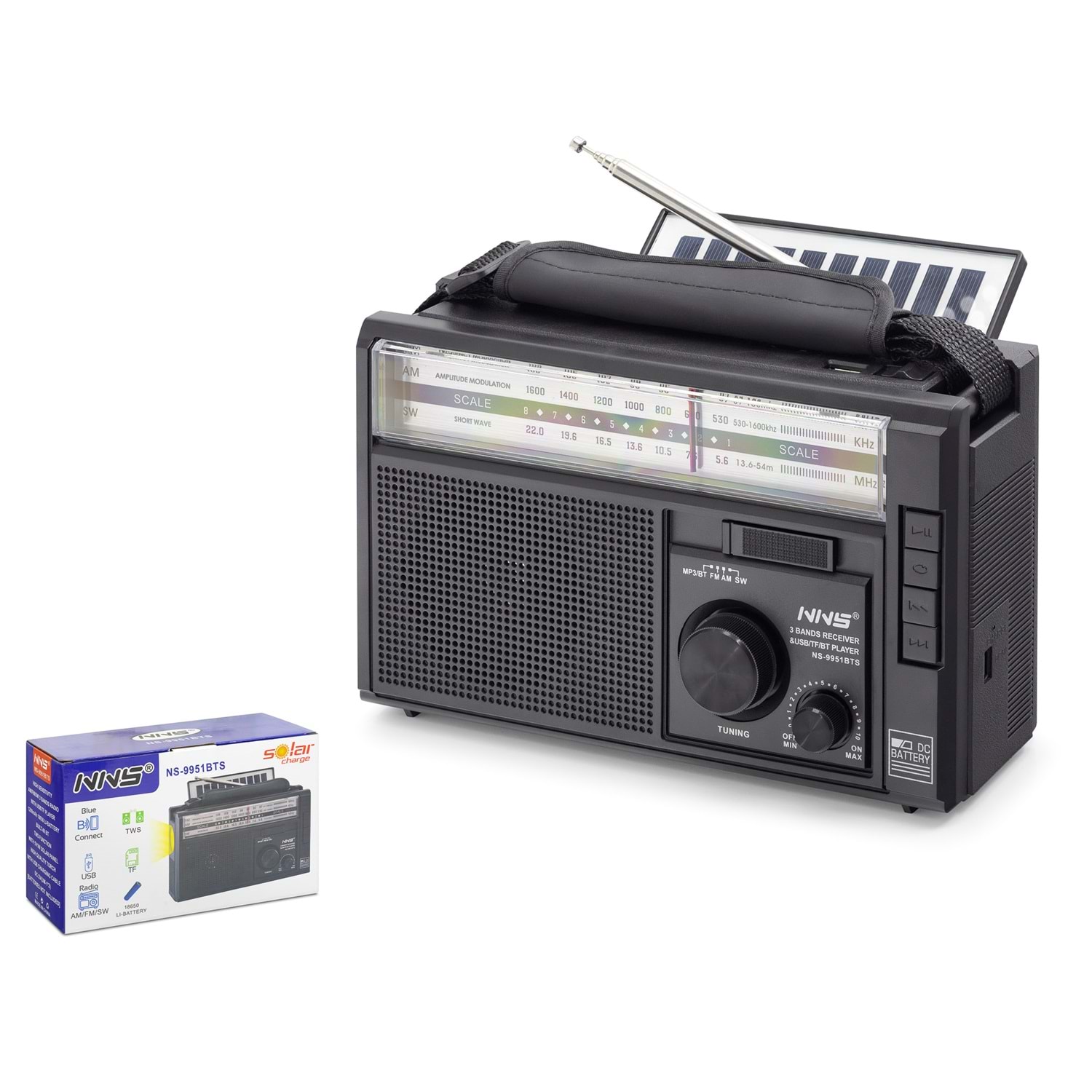 NNS NS-9951BTS BLUETOOTH NOSTALJİK FM RADYO SOLAR ŞARJLI TWS TAŞINABİLİR HOPARLÖR