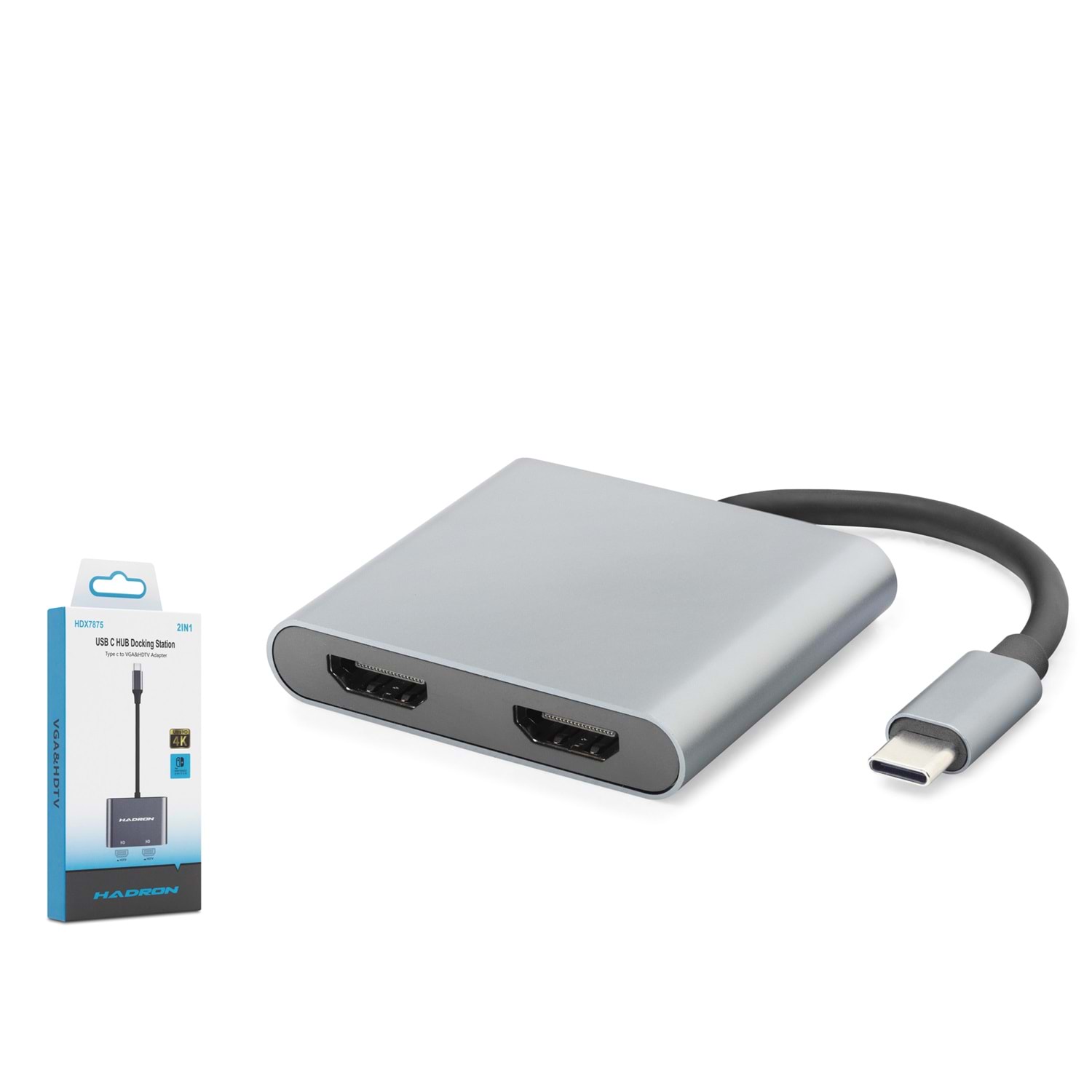 Hadron HDX7875, modern Type-C portuna sahip dizüstü bilgisayarlar, tabletler veya akıllı telefonlar için tasarlanmış çok fonksiyonlu bir görüntü çoklayıcı ve dönüştürücüdür. Bu kompakt istasyon, tek bir Type-C çıkışını iki adet bağımsız HDMI portuna dönüştürerek, aynı anda iki farklı monitöre veya televizyona yüksek çözünürlüklü görüntü aktarmanıza olanak tanır.