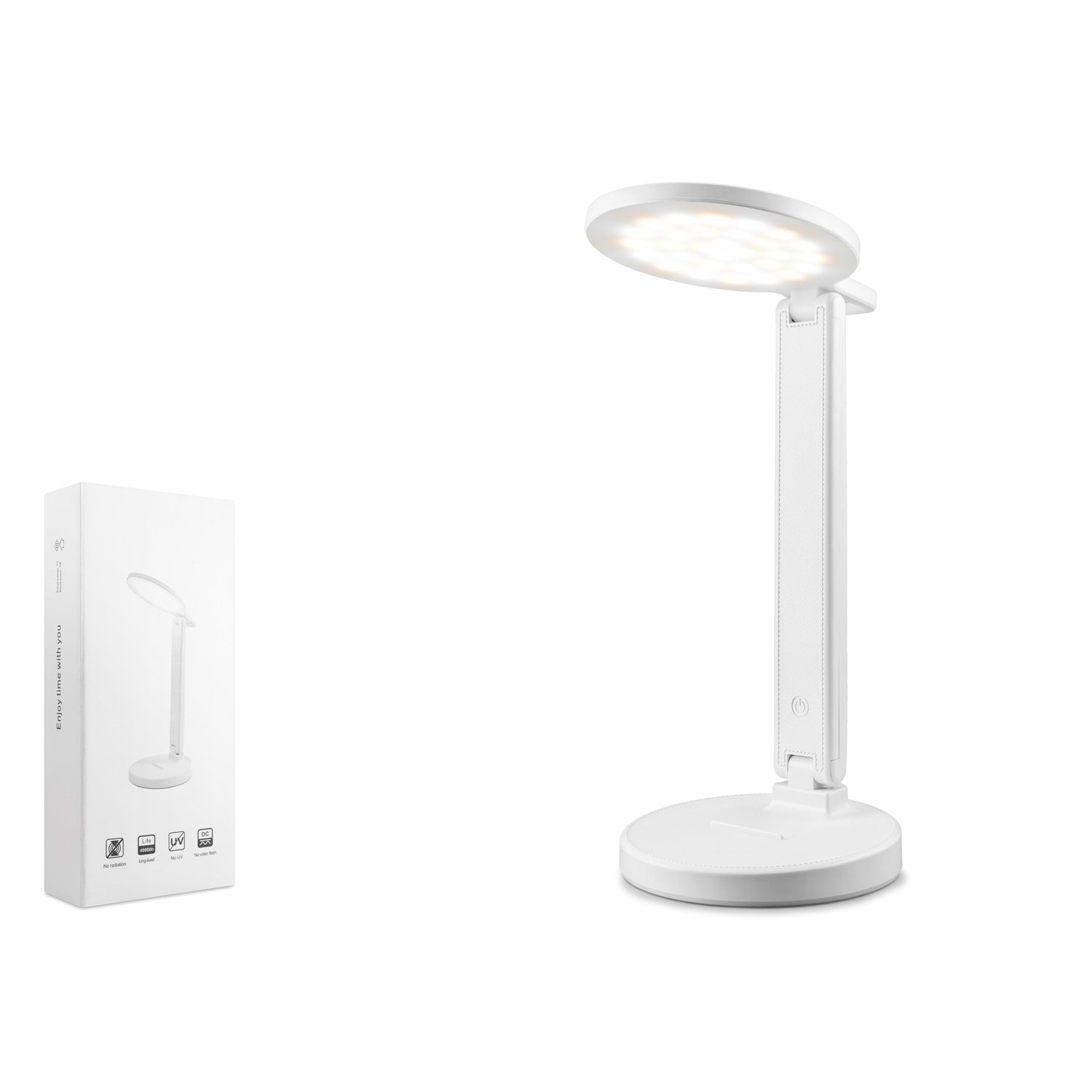 ELBA Q908, şıklığı ve fonksiyonelliği bir araya getiren, halka tipi (ring light) aydınlatma teknolojisi ile donatılmış profesyonel bir USB şarjlı masa lambası modelidir. Yuvarlak başlık yapısı, ışığı tek bir noktadan değil, geniş bir açıdan homojen şekilde yayarak çalışma yüzeyindeki keskin gölgeleri ortadan kaldırır. Beyaz dairesel tabanı ve minimalist tasarımıyla hem dekoratif bir obje olarak masanıza değer katar hem de üstün aydınlatma performansı sağlar.