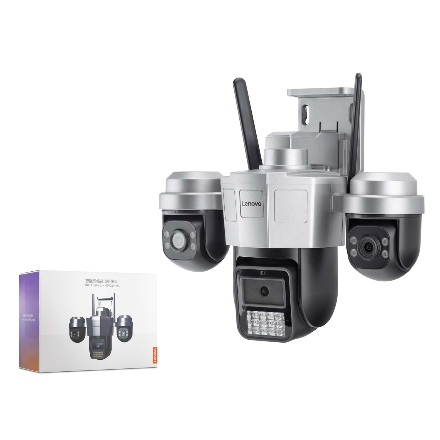 LENOVO W11CZ smart Wi-Fi IP güvenlik kamerası, 3 lens yapısı ile geniş alan izleme amacıyla tasarlanmıştır. İç ve dış mekan kullanım senaryolarında izleme çözümü olarak kullanılabilir.