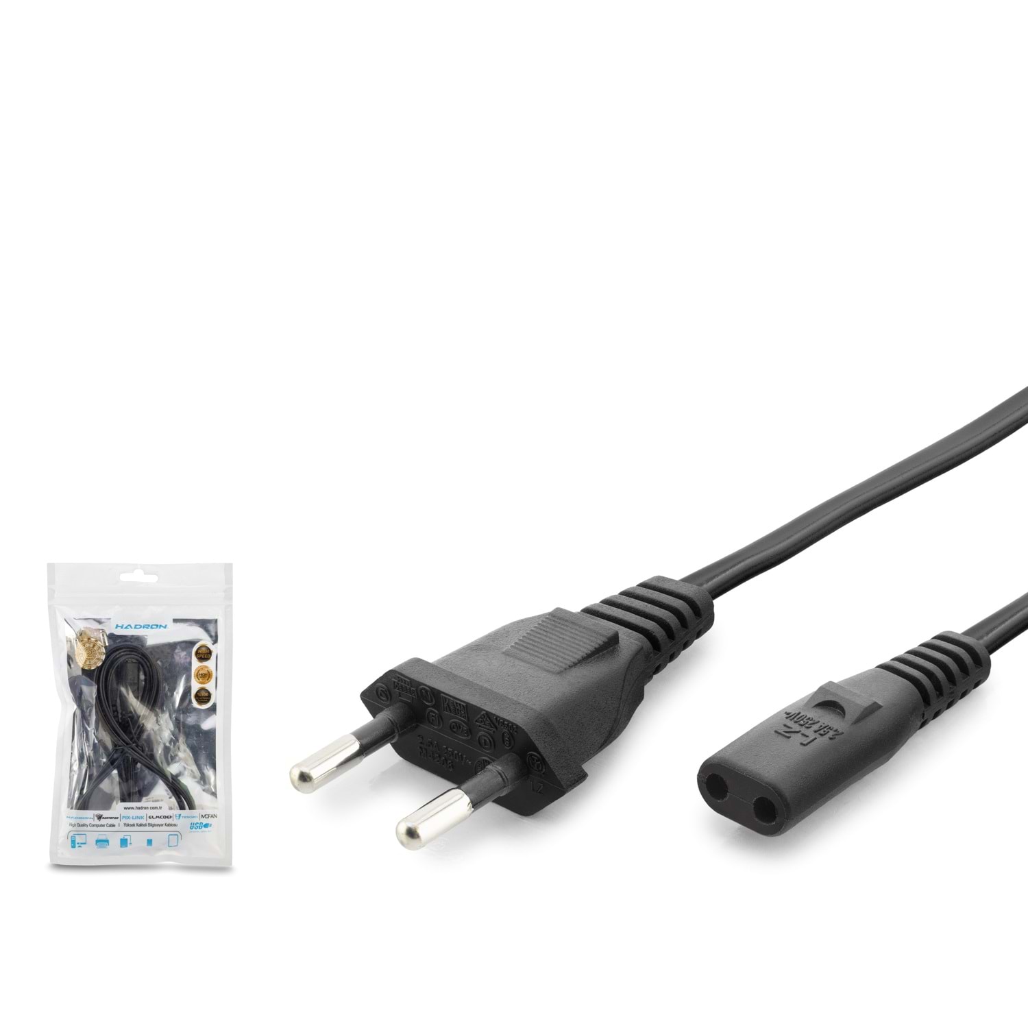 0.75 mm iletken kalınlığına sahip bu kablo, 500W güç kapasitesiyle enerjiyi cihazlarınıza ısınma yapmadan, stabil bir şekilde iletir. Standart "8 rakamı" tipi (C7) konnektör yapısı, uyumlu tüm cihaz girişlerine sıkıca oturarak kesintisiz bir güç akışı ve güvenli bir kullanım deneyimi sunar.