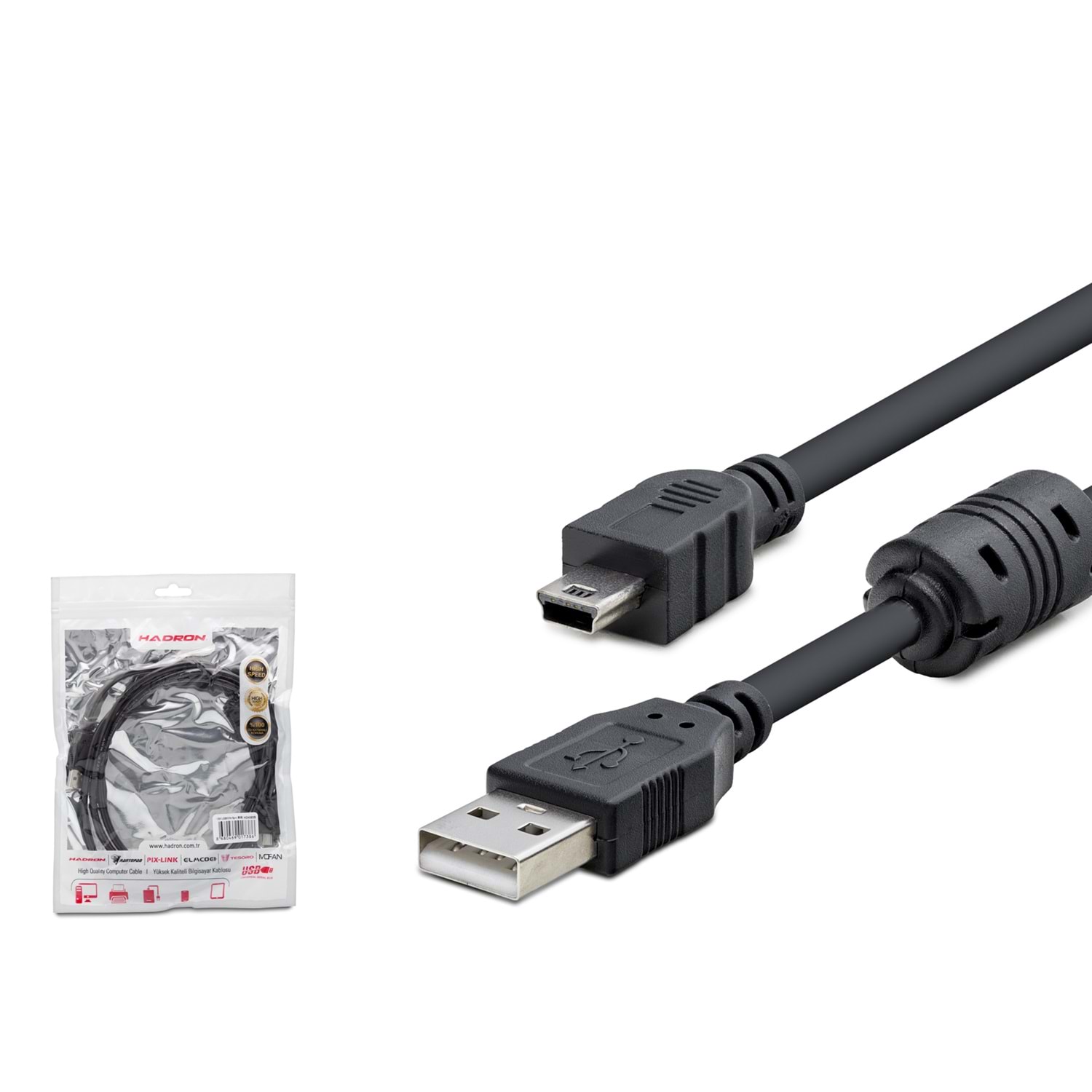 Hadron HDX7538, Mini USB (V3/5-Pin) bağlantı portuna sahip cihazlarınızı bilgisayarınıza bağlamak için tasarlanmış 1.5 metre uzunluğunda yüksek kaliteli bir veri ve şarj kablosudur. İdeal uzunluğu sayesinde masaüstü ve dizüstü bilgisayarlarınızla dijital kamera, MP3 çalar, navigasyon cihazı ve harici disk kutuları arasında konforlu bir erişim sağlar.