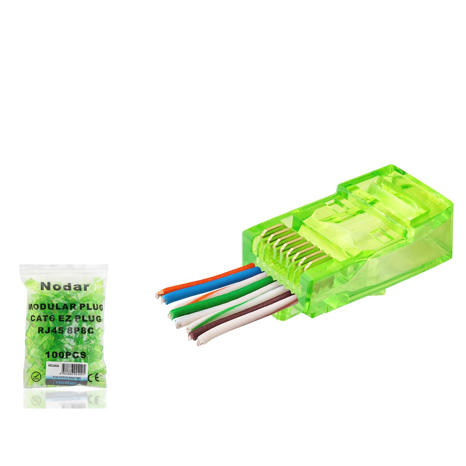 NODAR ND2409, profesyonel ağ kurulumlarında montaj süresini kısaltmak ve hata payını minimize etmek için tasarlanmış EZ (Easy) tipi delikli RJ45 konnektör setidir. Şeffaf yeşil rengi, karmaşık sistem odalarında veya çoklu kablo hatlarında belirli veri yollarının (Örn: IP Kamera hatları veya VoIP hatları) kolayca görsel olarak ayrıştırılmasını sağlar. EZ (pass-through) teknolojisi sayesinde kablo damarları konnektörün ön ucundan dışarı çıkar, bu da çakma işleminden önce renk dizilimini saniyeler içinde doğrulamanıza imkan tanır.