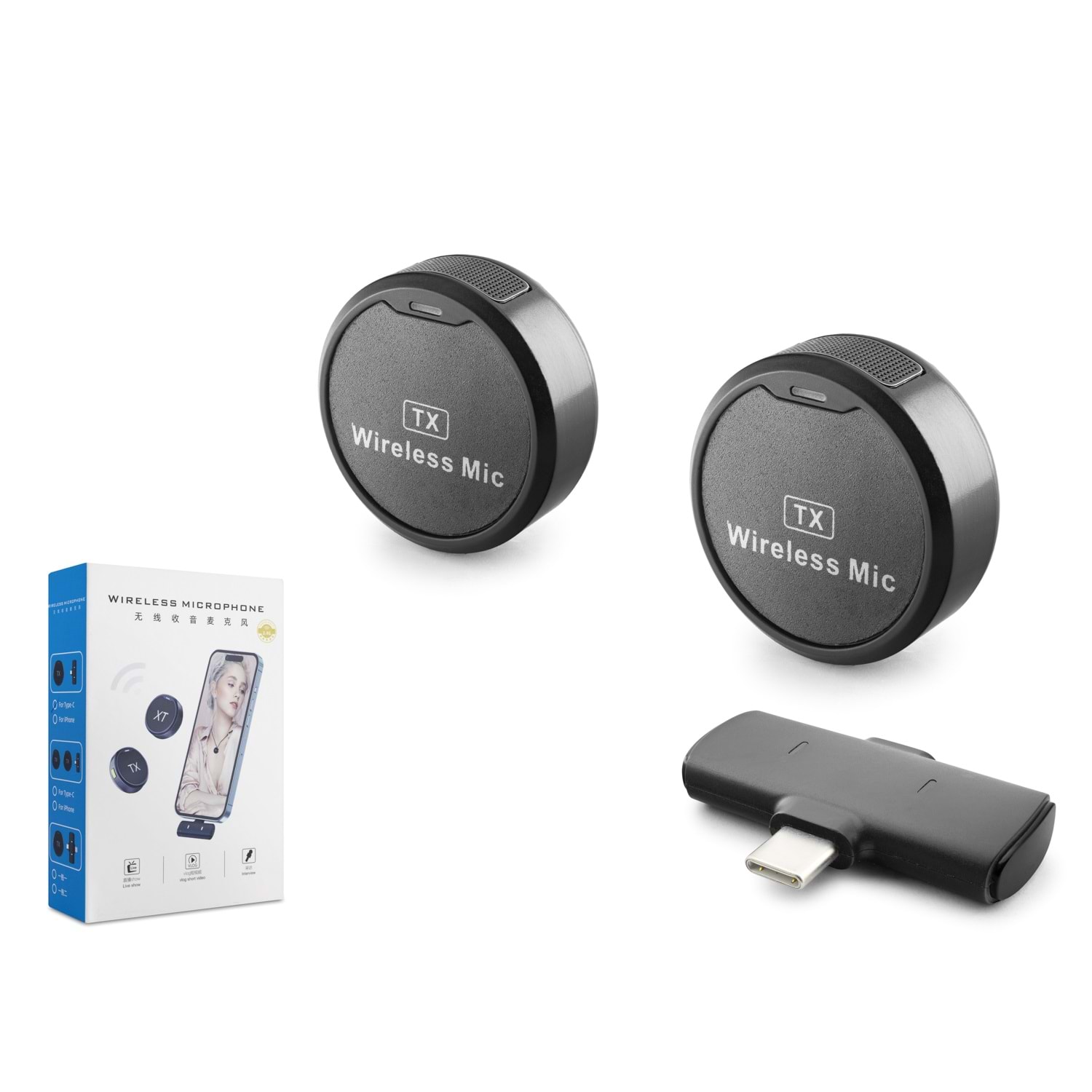 HADRON HDX2795 Kablosuz Yaka Mikrofon Seti, Type-C bağlantı yapısına sahip uyumlu cihazlarda ses kaydı, video çekimi, röportaj, canlı yayın ve mobil içerik üretimi için kullanılabilen kablosuz mikrofon çözümüdür. Çift mikrofon yapısı sayesinde iki farklı ses kaynağı aynı anda kayıt edilebilir.