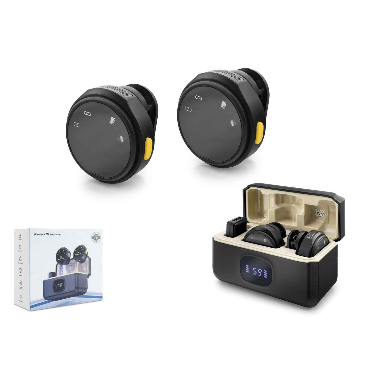 HADRON HDX2800 Kablosuz Yaka Mikrofon Seti, Type-C bağlantı yapısına sahip uyumlu cihazlarda ses kaydı, video çekimi, röportaj, canlı yayın ve mobil içerik üretimi için kullanılabilen kablosuz mikrofon çözümüdür. Şarj üniteli yapısı sayesinde mikrofonlar taşınabilir ve aynı ünite içerisinde şarj edilebilir.