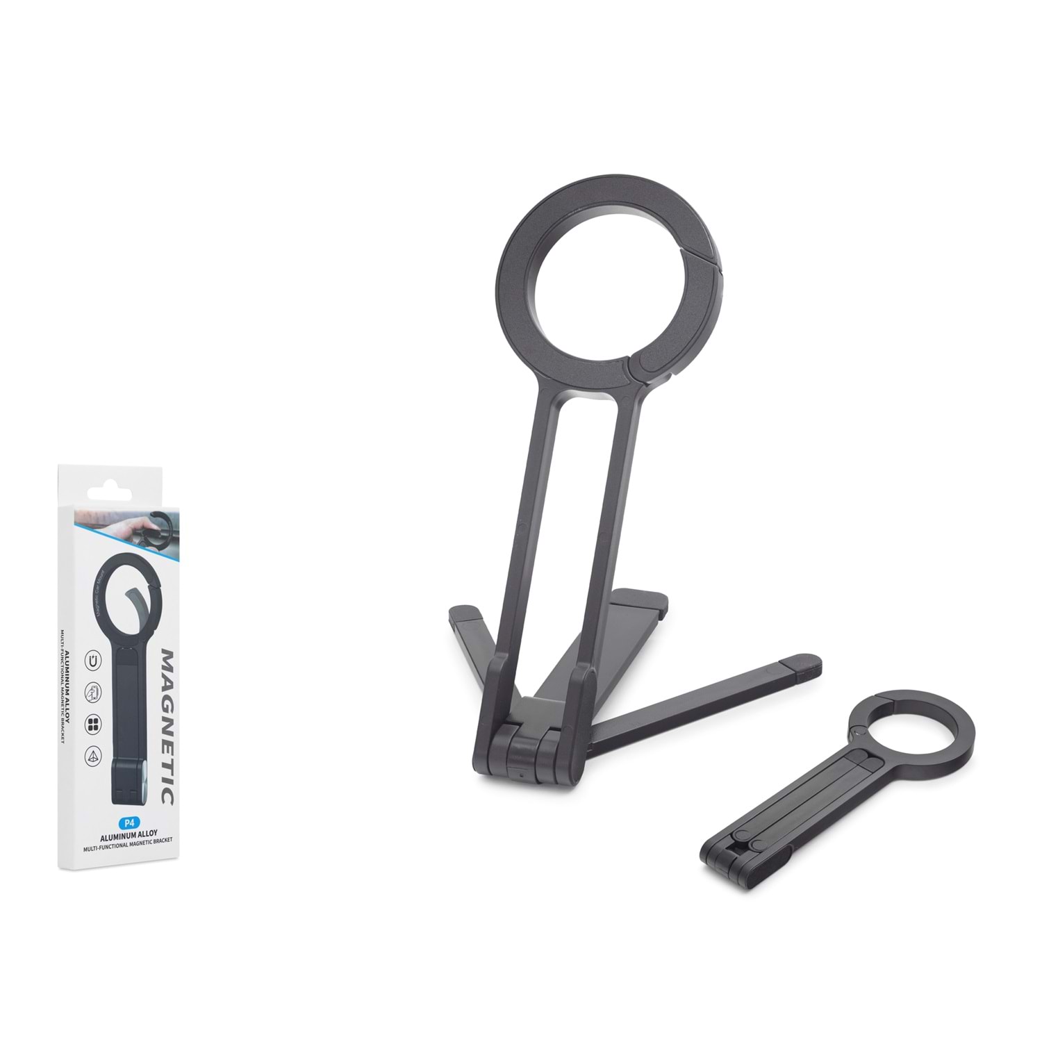 NODAR ND8029 manyetik masaüstü telefon standı, mobil cihazların masa üzerinde sabit ve ayarlanabilir açı ile kullanılmasını sağlayan katlanabilir masaüstü stand aparatıdır. Manyetik tutucu yapısı sayesinde cihaz sabit şekilde stand üzerinde tutulur.