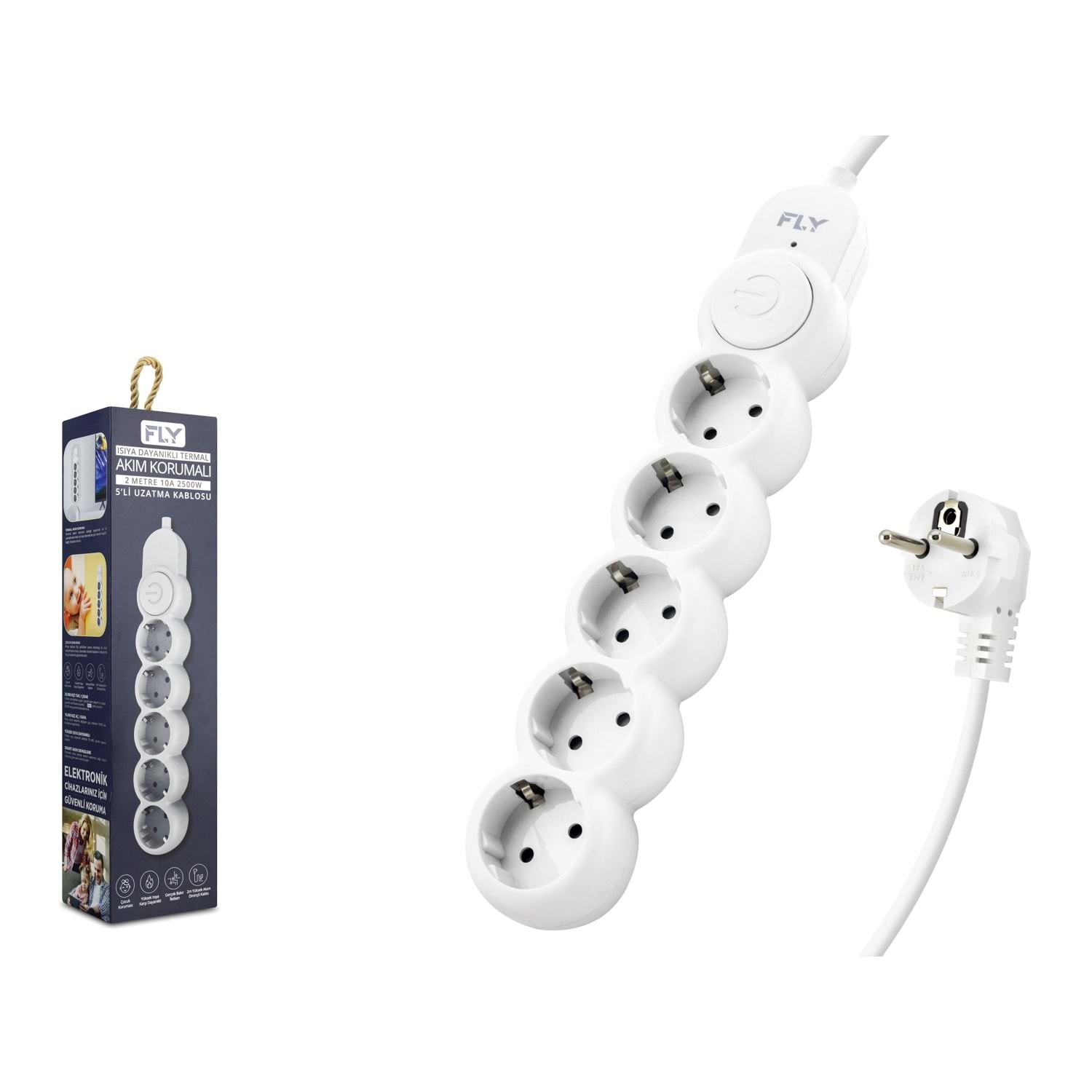 FLY 3394-01 uzatma kablosu, çoklu cihaz kullanımına uygun olarak tasarlanmıştır. 5 priz çıkışı ile aynı anda birden fazla elektrikli cihazın kullanılmasına olanak tanır.